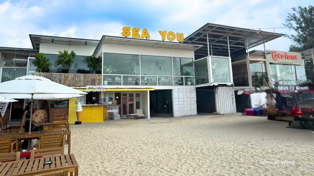Walk up from the sand and you’ll find rows of converted shipping containers stacked and arranged like a seaside open-air mall. They’re cafés, bars, pop-up shops and tiny kitchens, all spilling out onto wooden decks and sand-level seating. It feels fresh and well-curated with clean lines and lots of outdoor space that lets the beach be the main backdrop. The sea is never far: choose a seat outside and you’ll still hear waves behind the music.
