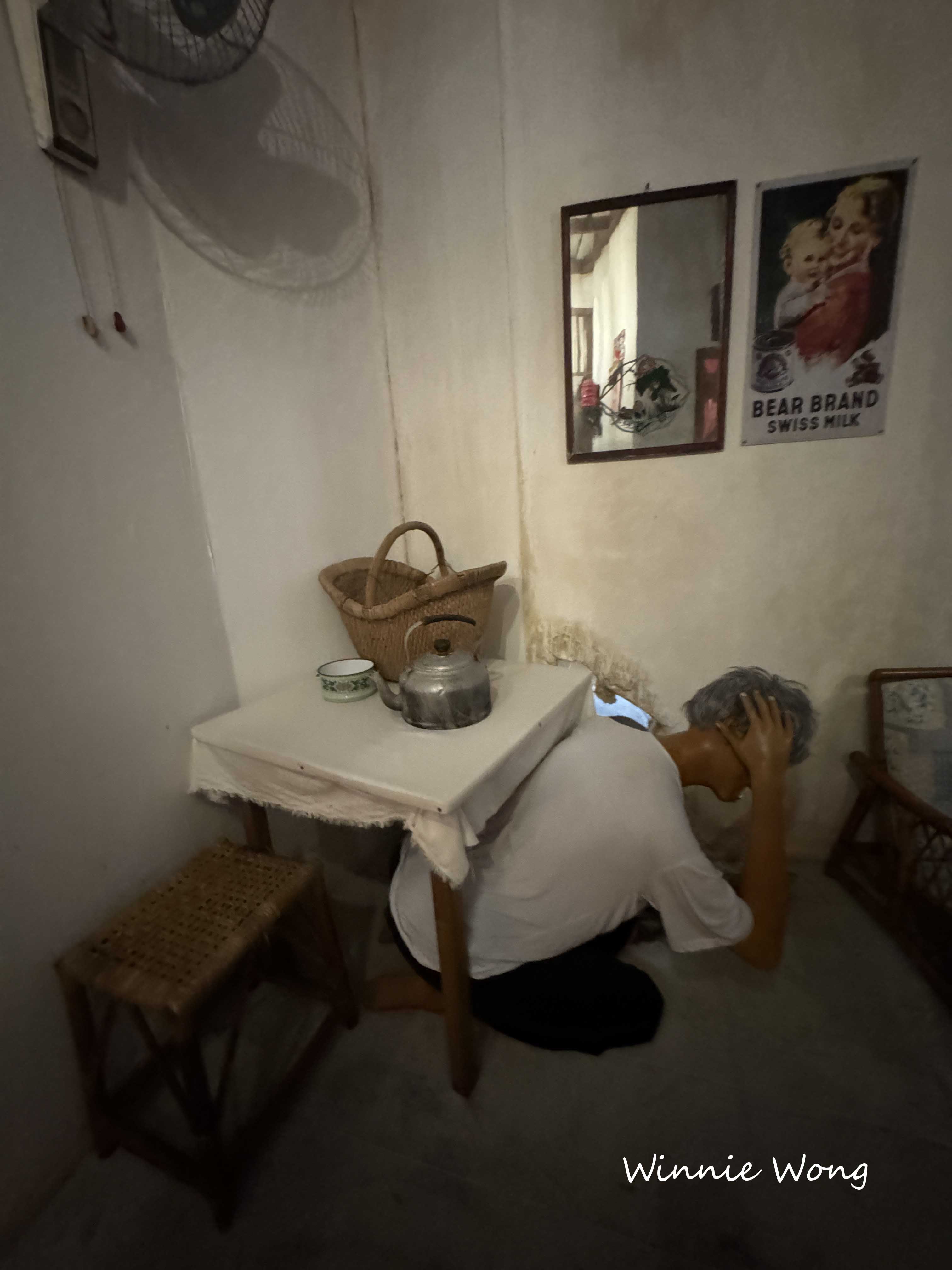 The gallery doesn’t ignore the painful parts of history. It highlights the reality of Penang during World War II and the Japanese Occupation. When you walk into the wartime zone, the atmosphere changes. Lighting softens, props become sparse, and the atmosphere reflects wartime uncertainty.